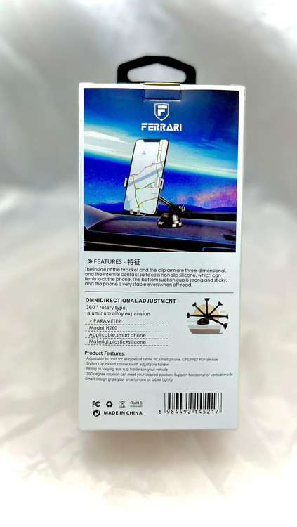هلدر موبایل فراری بدون نیاز به چسب روی شیشه شما کافیست با هلدر مکنده که داخل بسته بندی هست به داشبورد و یا شیشه خود نصب نمایید.