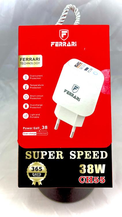 آداپتورCH55از برند فراری که دو مدل خروجی خدمت شما ارائه می دهد:۱-تایپ سی۲-یو اس بی۳که ولتاژ های خروجی به شرح زیر می باشد.